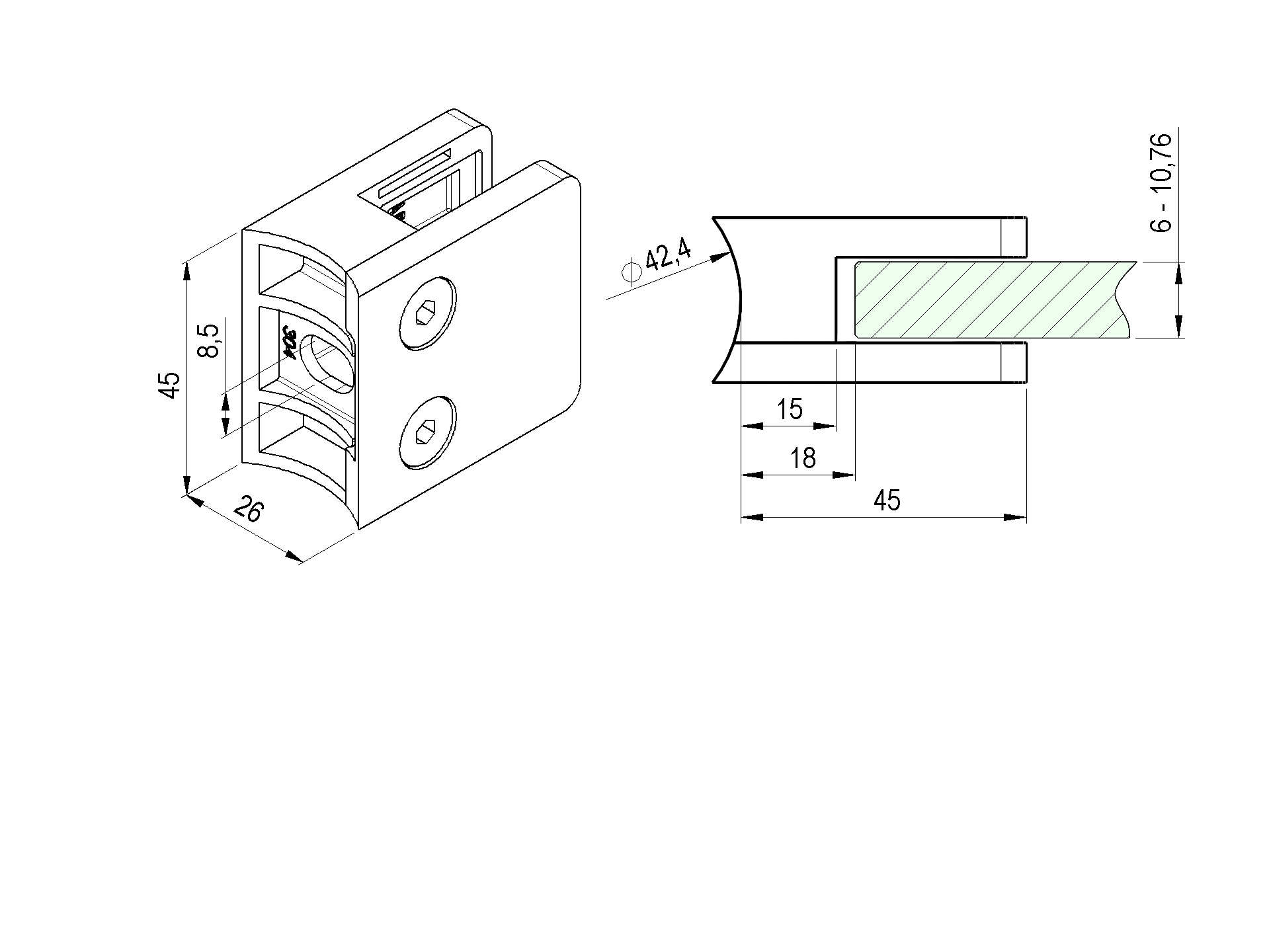 Držiak skla, zábradlie - set A/23KP-042-set4