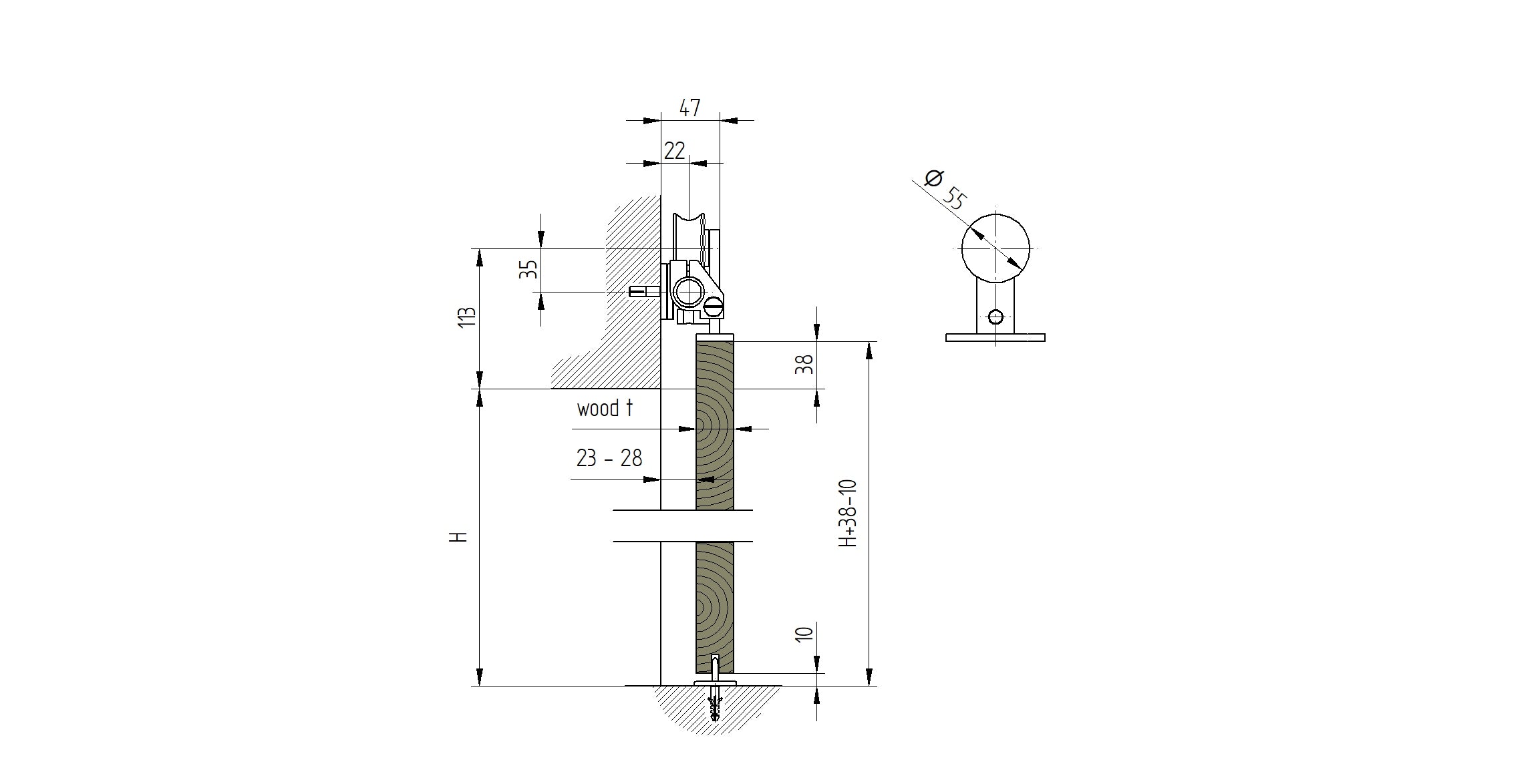 Kovanie pre posuvné drevené dvere - tyč INOX WS/P9101/S-set