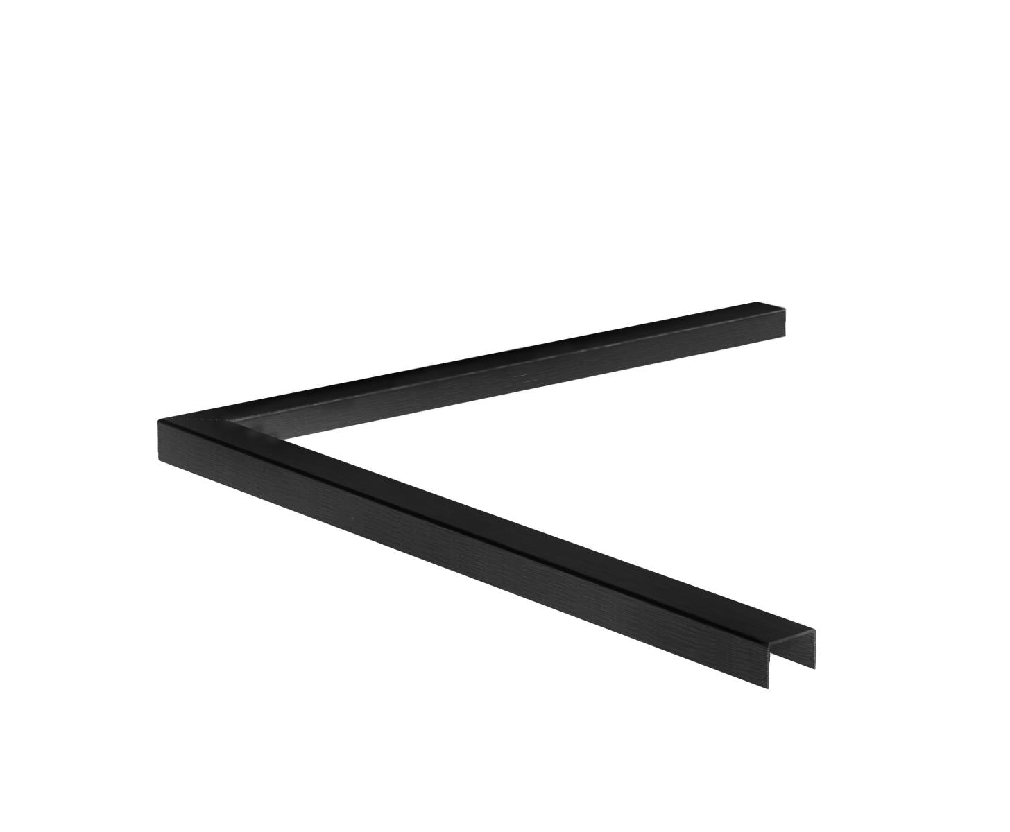 Aluminium-Ecke zur Beendigung der Glasfüllung, Oberflächenbehandlung schwarz eloxiert.