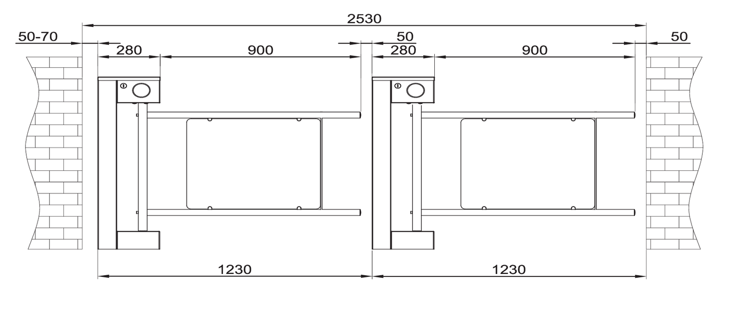 Turnstile suitable for VIP entrances and entrances with wheelchairs, carts, strollers.