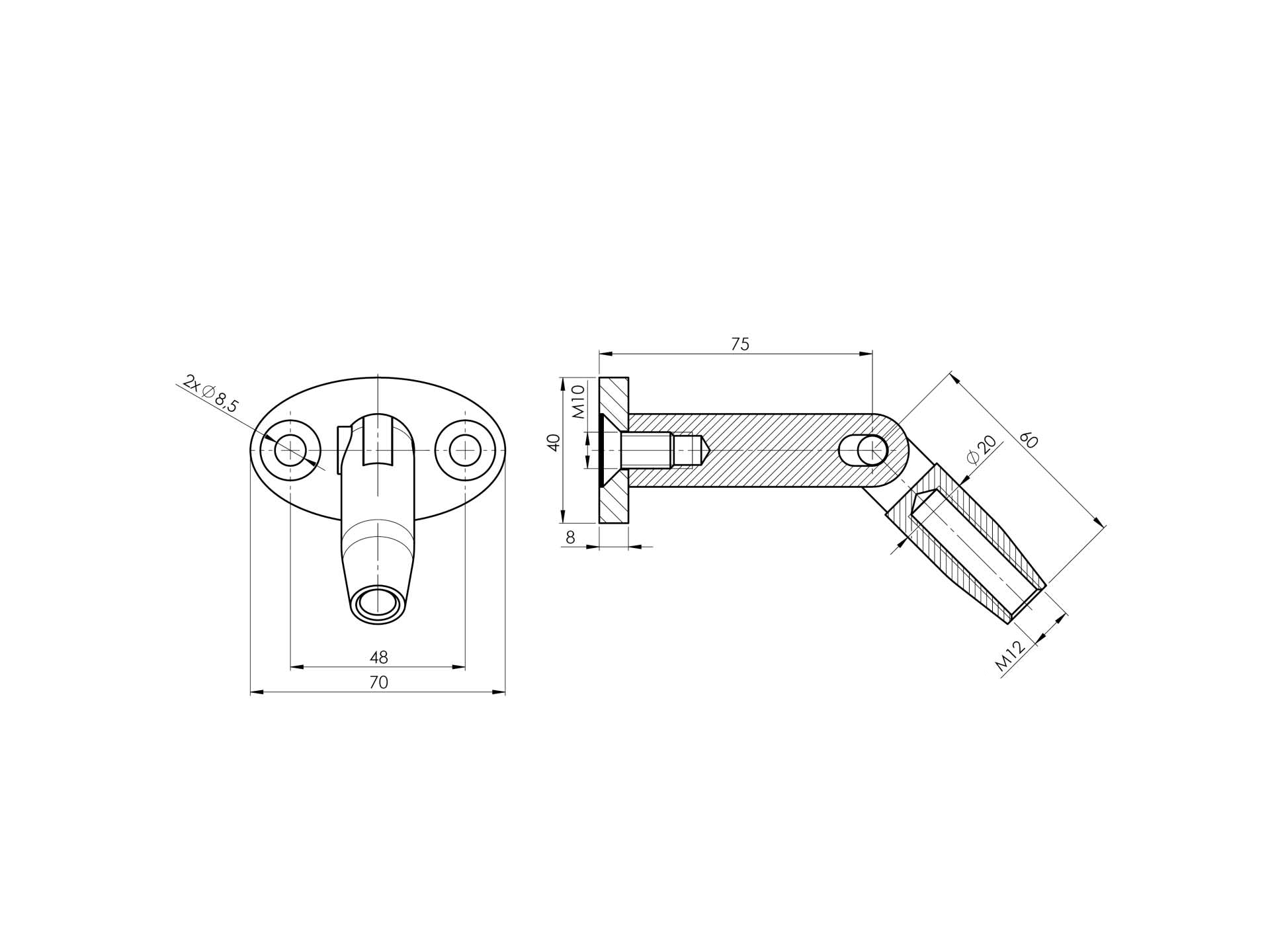 • Canopy - top anchoring AISI304, 70x40/M12mm A/PR70x40-M12