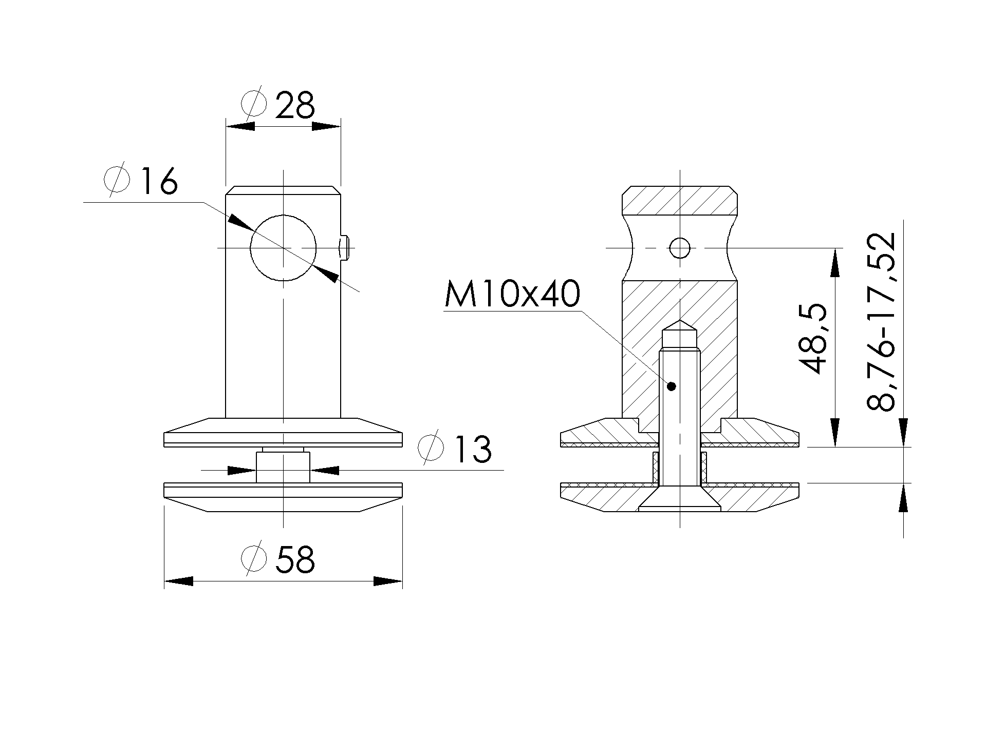 • Canopy - rod AISI316, d12/2000/M12mm A14/PR12-2000-M12