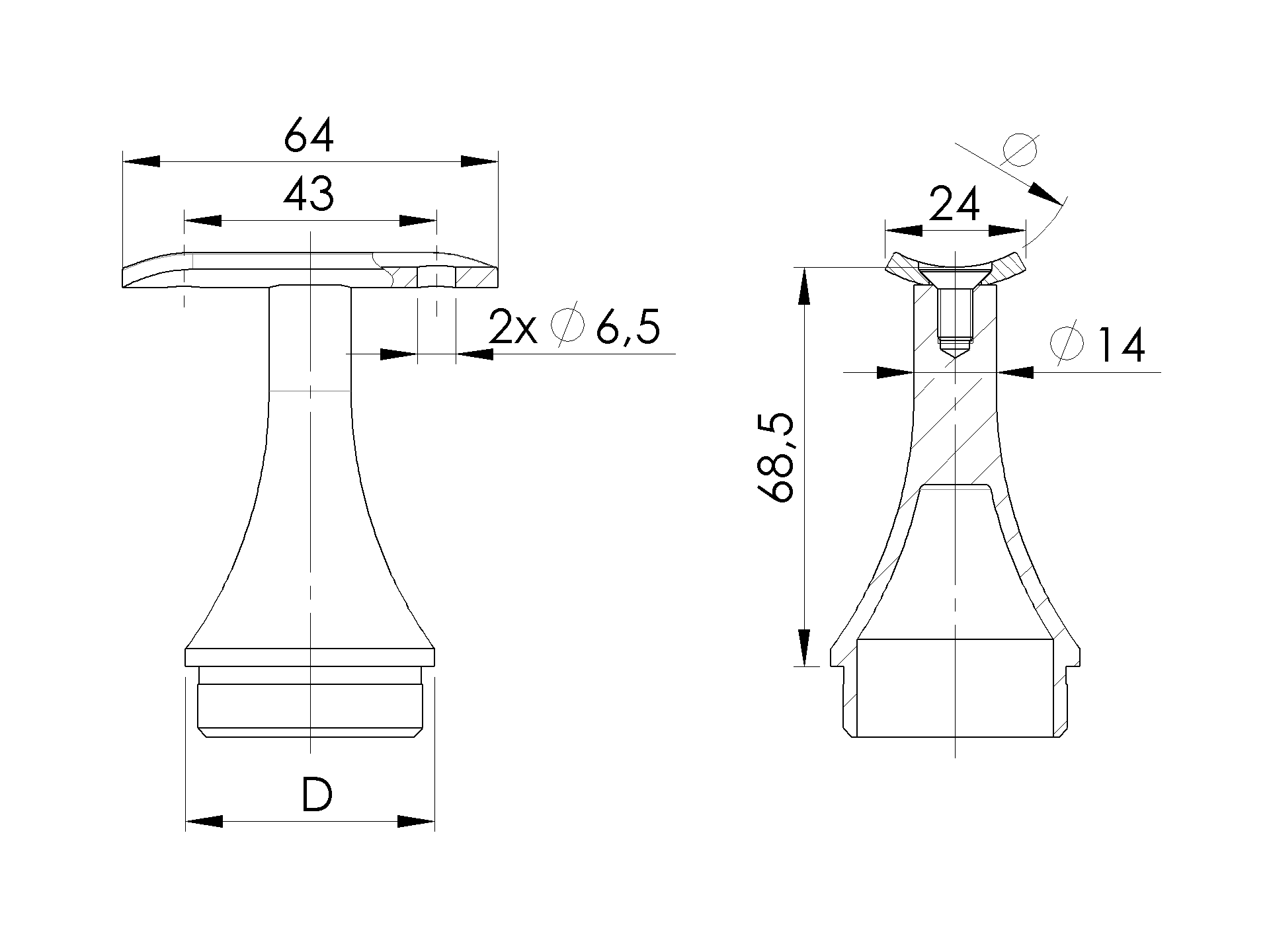 Lowest price in the last 30 days: €5,95 without VATIn stock (37 units)Handrail bracket AISI304, d48,3x2/H68mm A/0713-248