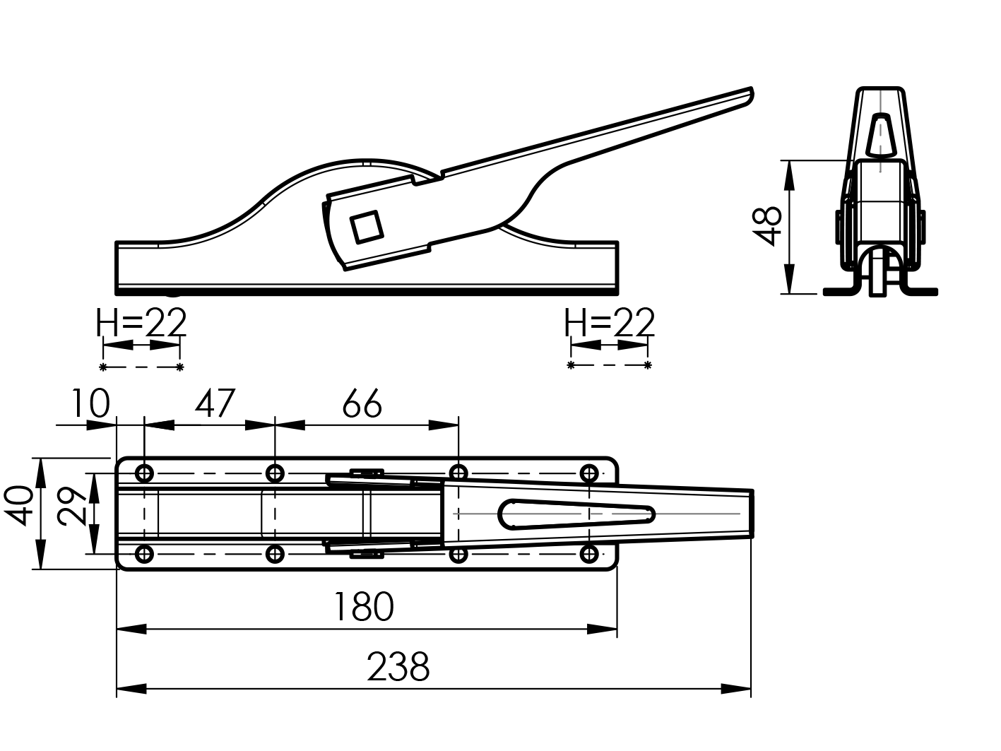Lever closure, Zn, L180mm D7/22-180