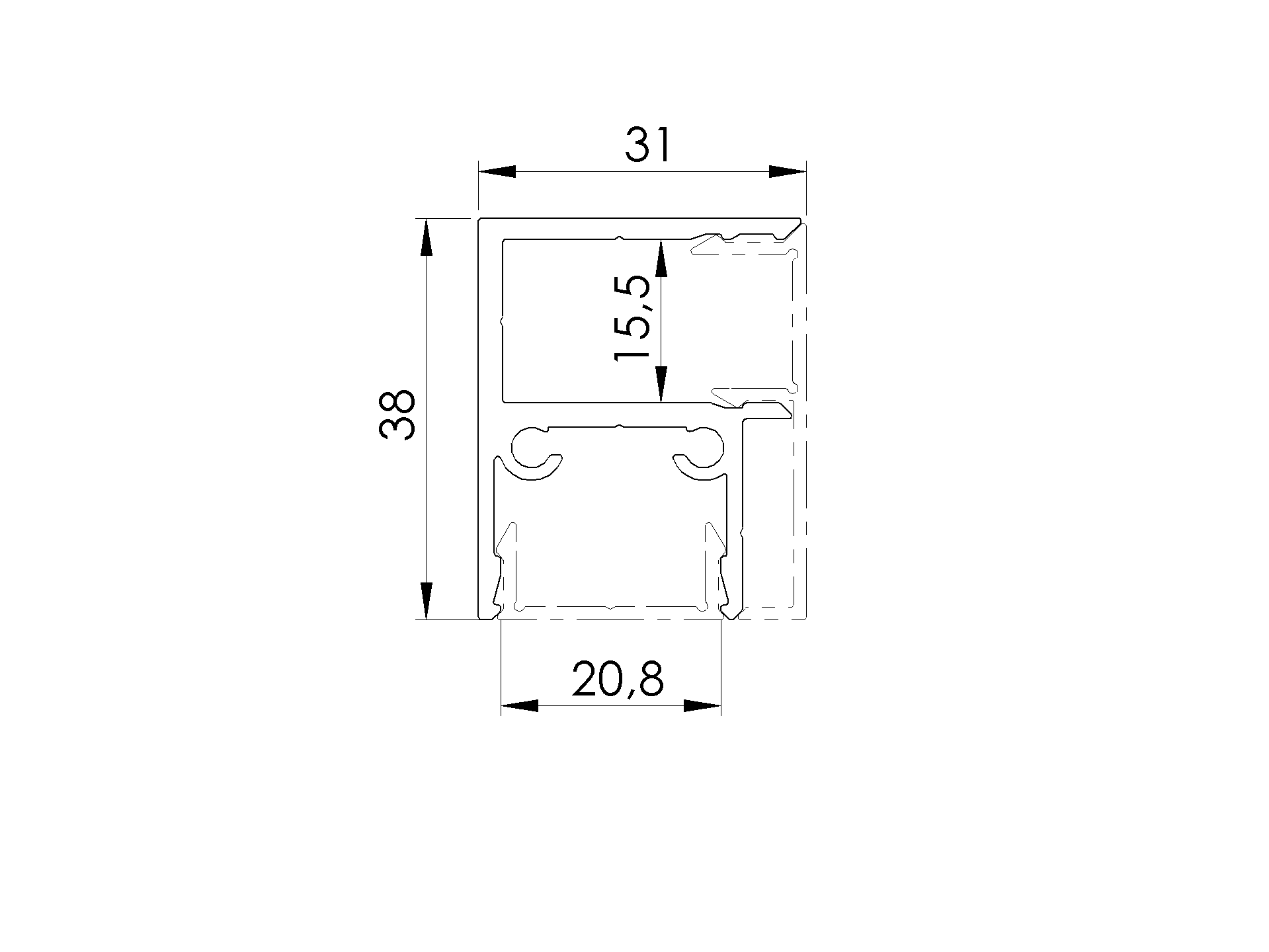 • Cover strip for U-adapter 21mm fillings - 6000mm