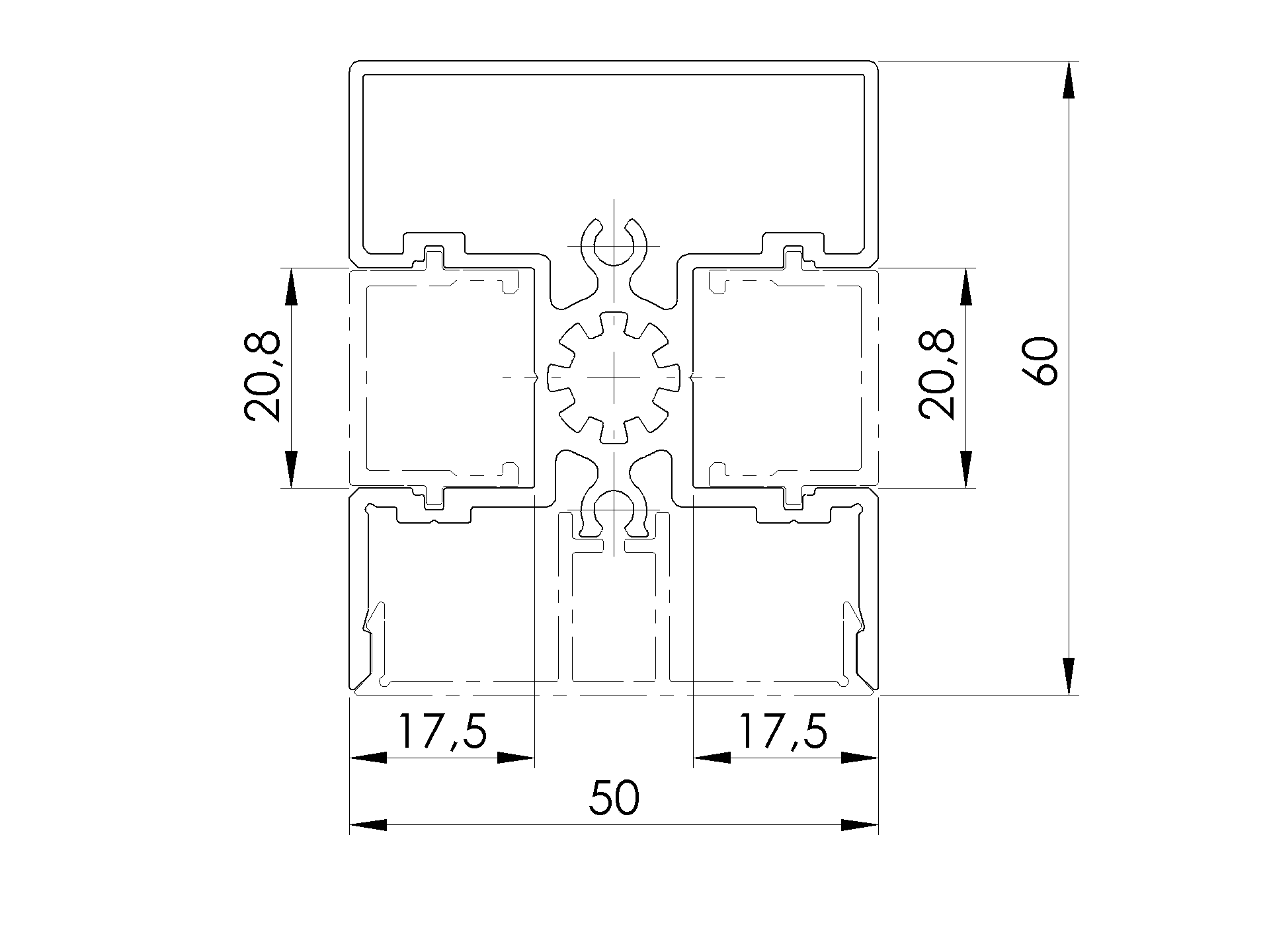 Set of aluminum post 50x60 and cap - 6000mm R7016 FG/P50x60-6000-N