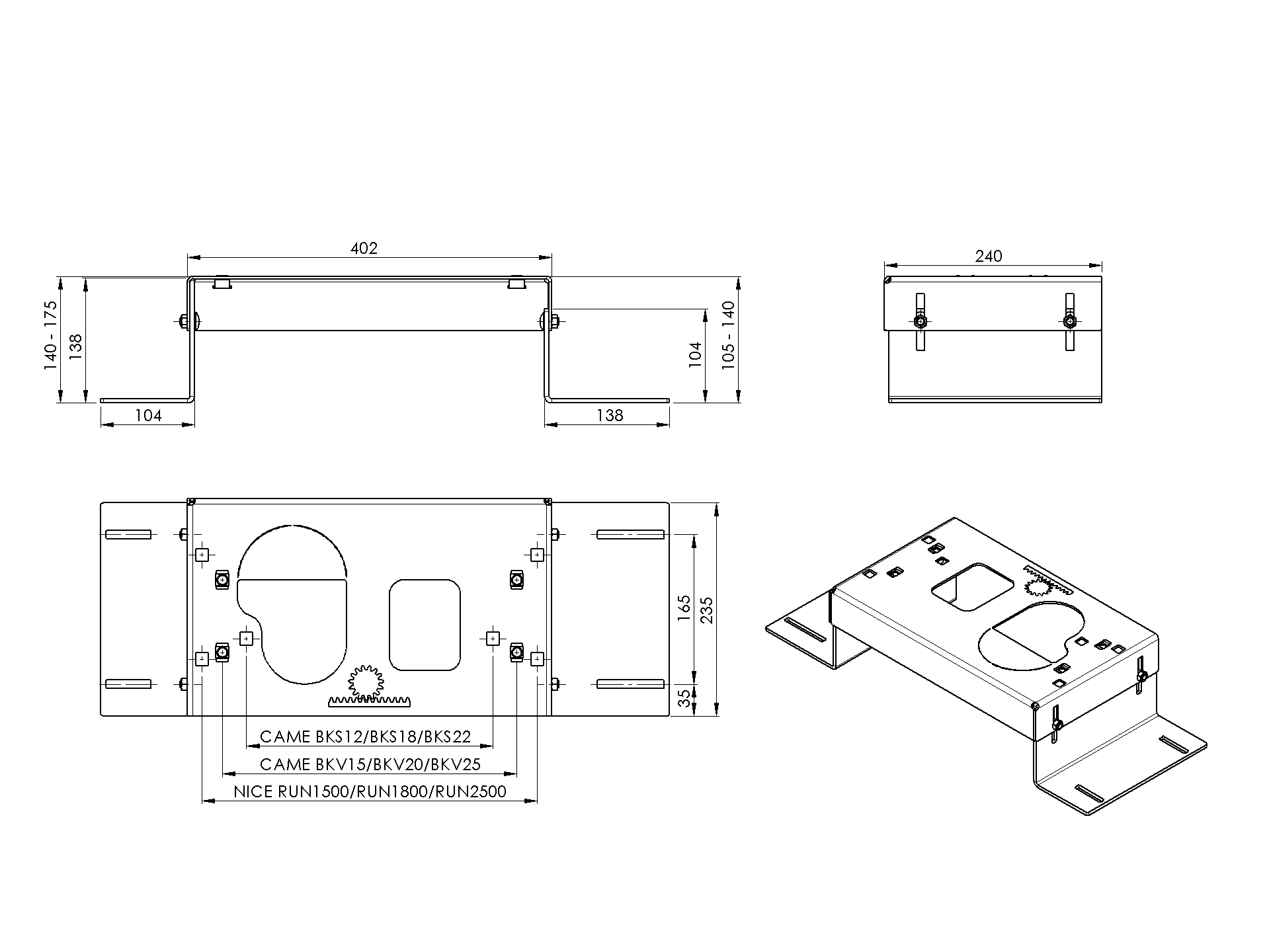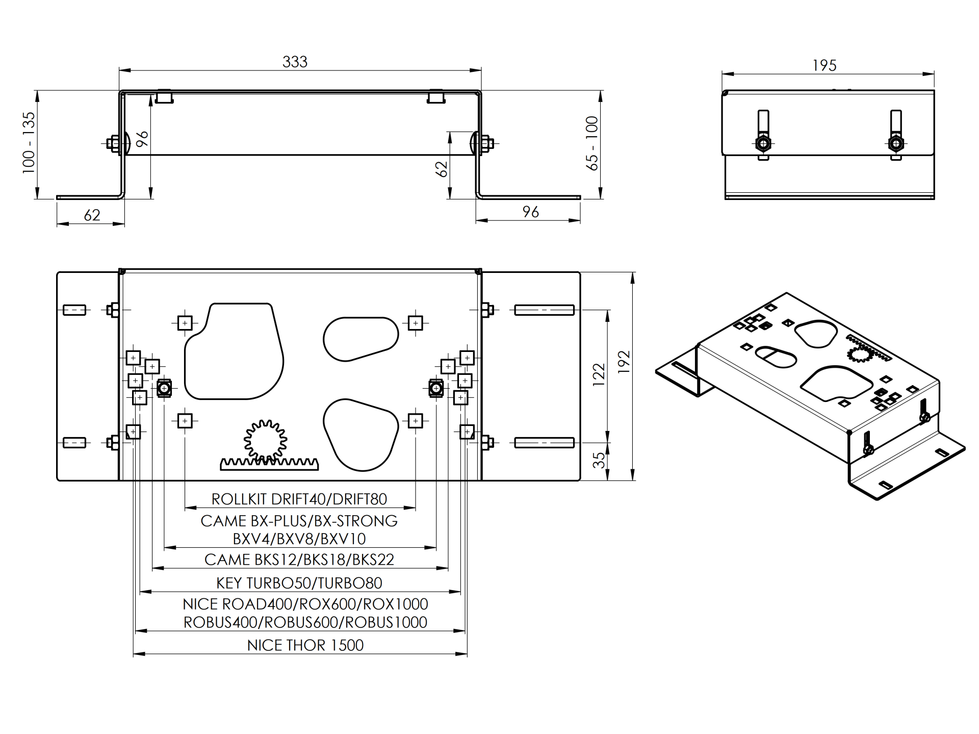 4 pcsMaterialStainless steel AISI 304M12Universal stand for sliding gate drives UNI-STAND