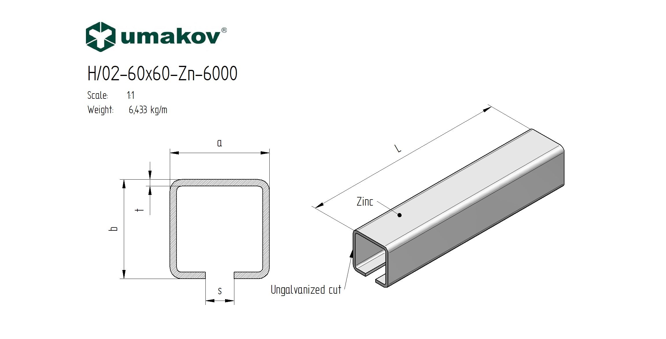 • Guiding track Zn, 70x60x3,5mm, L6m H/02-70x60-Zn-6000
