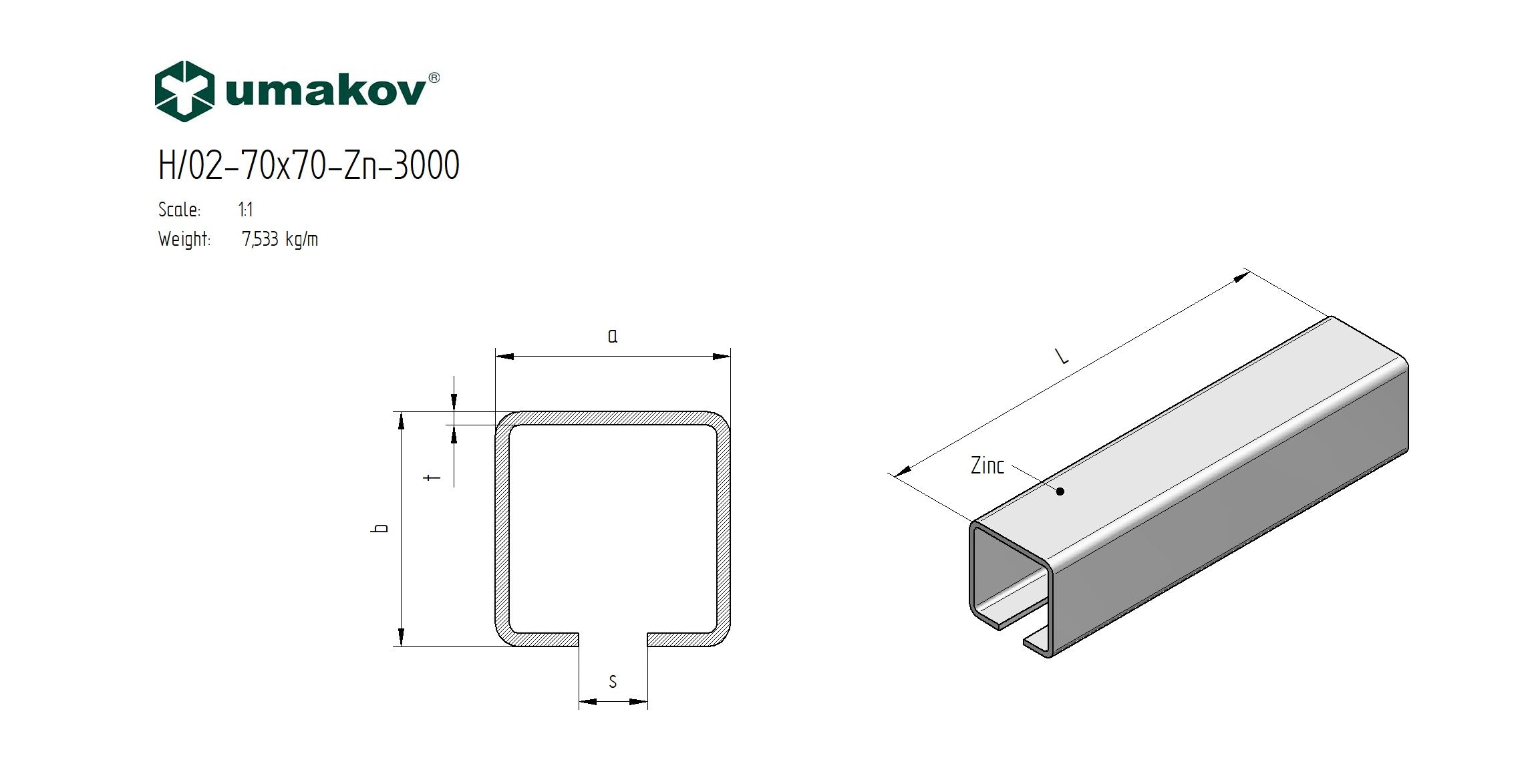 • Guiding track Zn, H/02-70x70-Zn-3000