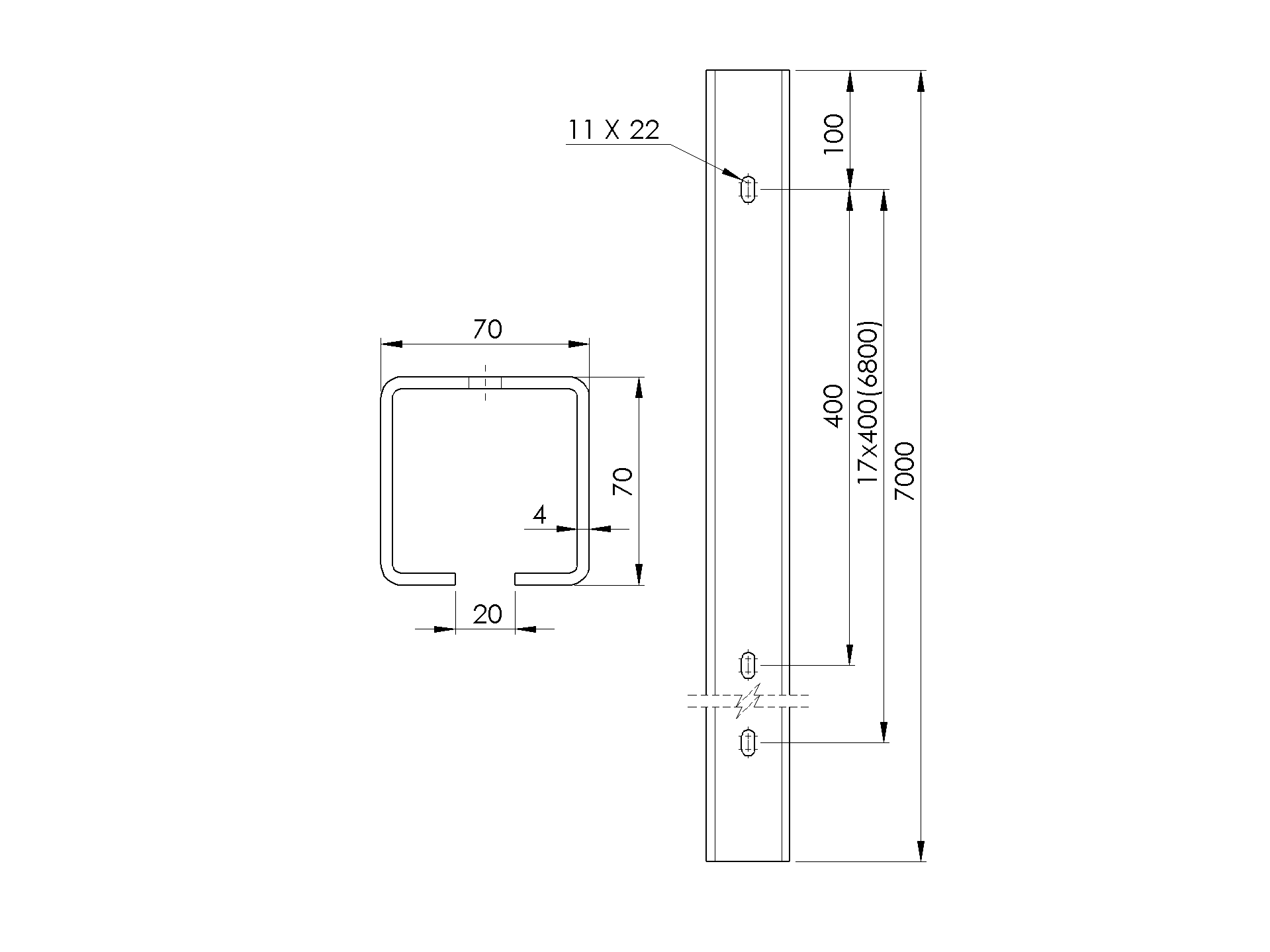 Guide profile with holes, galvanized Zn H/02-70x70-Zn-D-7000