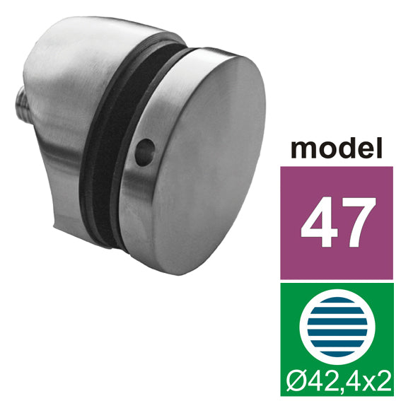 Material: Stainless steel AISI 304, Surface finish: Satined, Glass t: 8-17,52, Filling: Glass, Post: D42,4, Model: Model 47, Phi: 42,4, h: 10, M: M10x45, D: 50, d: 17, Glass hole: 20