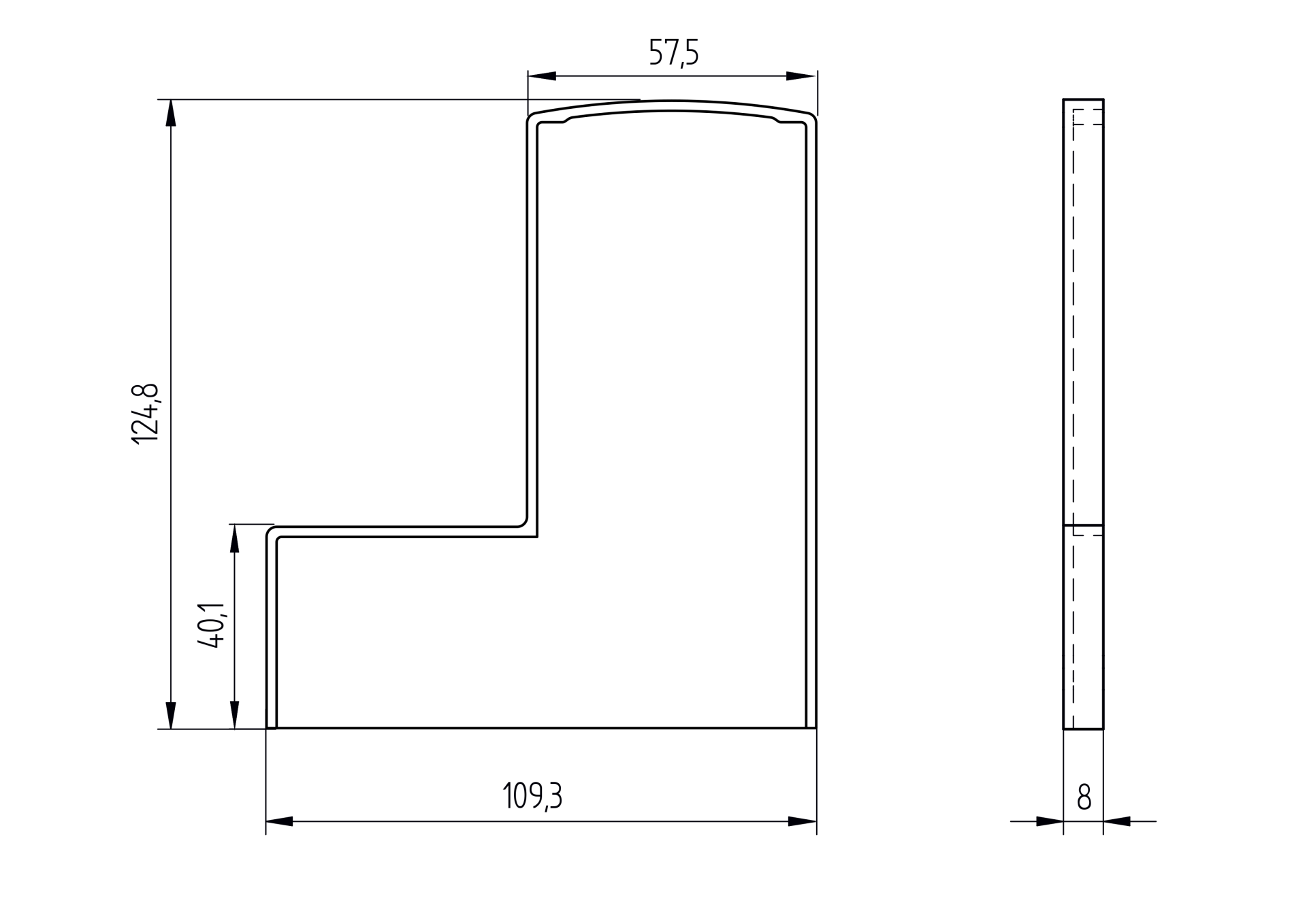 • Base Channel End Plate 125x46 AL/INOX effect/Satin