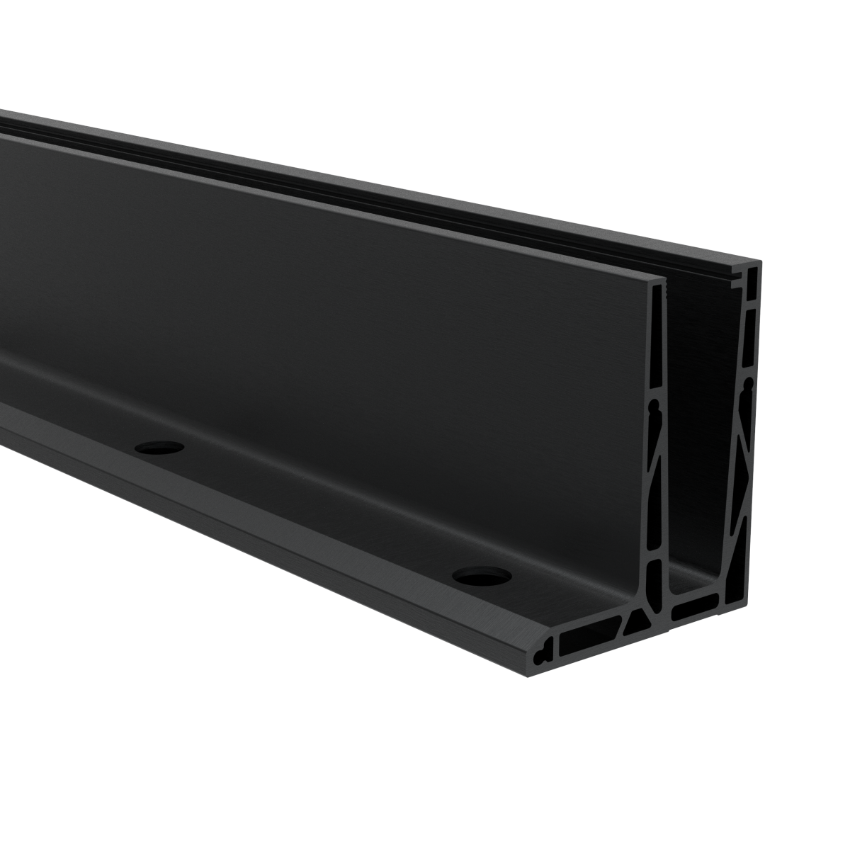 AL anchoring profile for glass, top mounting, powder-coated finish, shade RAL 9005, without accessories.
