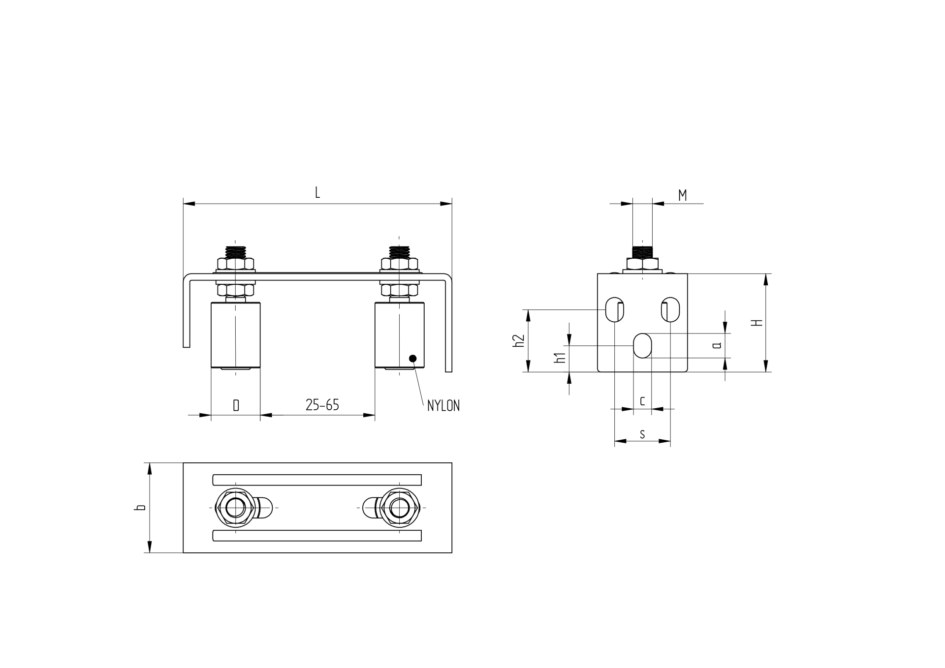 • Top holder 2 rollers Zn, 145x57mm, D42 H/12-2