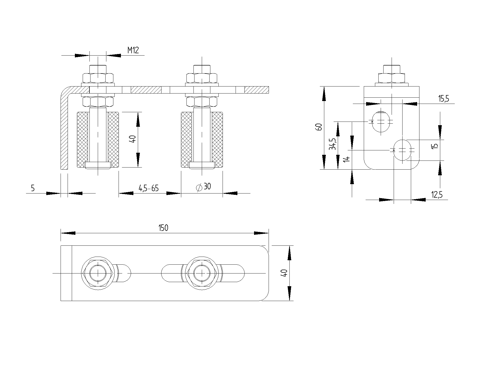 Adjustable 2 roller guide plate INOX, 165x57mm,D30 H8/12-2S