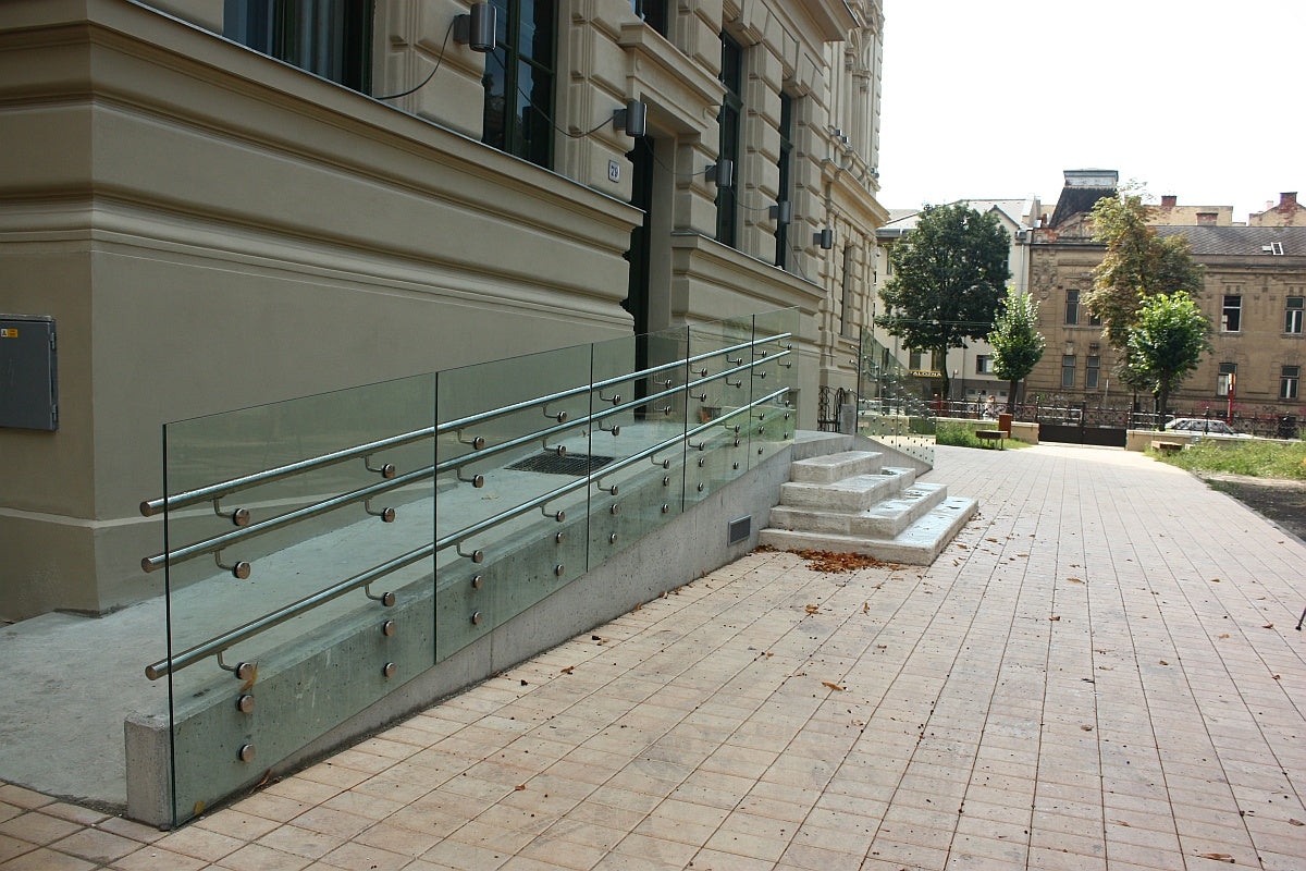 The glass infill point holder is a special construction element used to fix the glass infill to the frame or structure without the use of traditional bar holders. These holders are usually in the shape of a round or square tip that is fixed into the substrate and holds the glass using a small contact point. They provide a minimalist look as they do not require extensive mouldings or frames to surround the glass. This design allows for maximum use of light and openness of space, making them ideal for modern and minimalist architectural applications. They are particularly used in interior and exterior applications such as railings, balustrades, doors, walls and other structures where a modern and elegant look is desired.