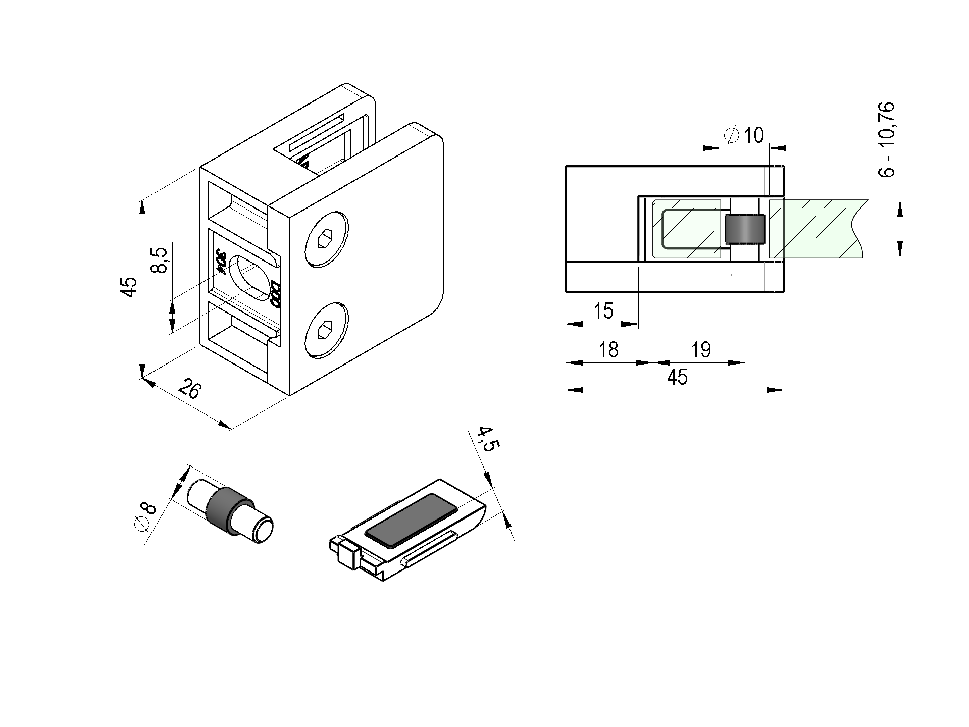 Rubber inlay for glass clamp A19/23-P1,5/K3,5