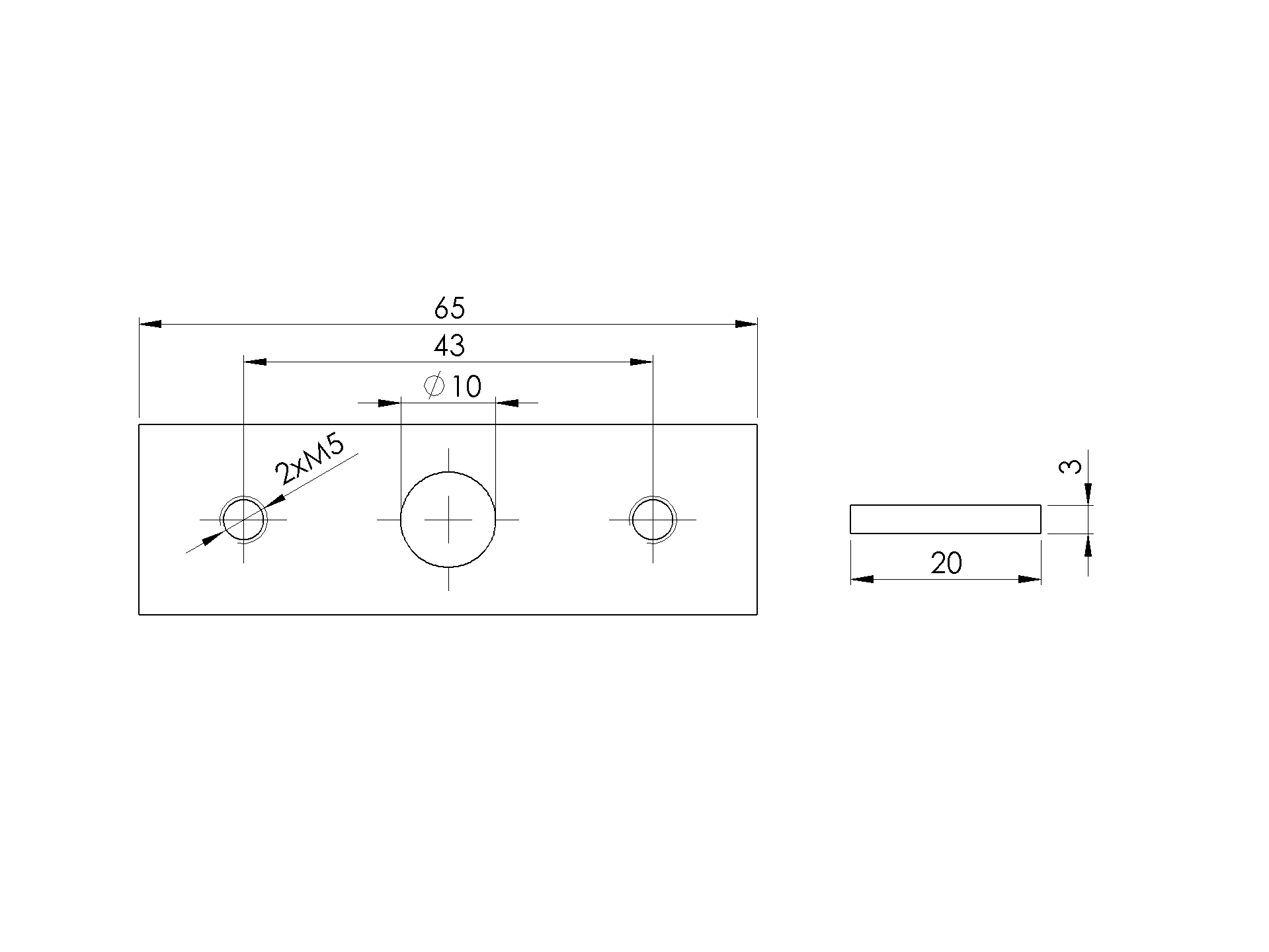 Bracket holder for led handrail, 65x20, AISI 316 A14/PD-LED-23x24