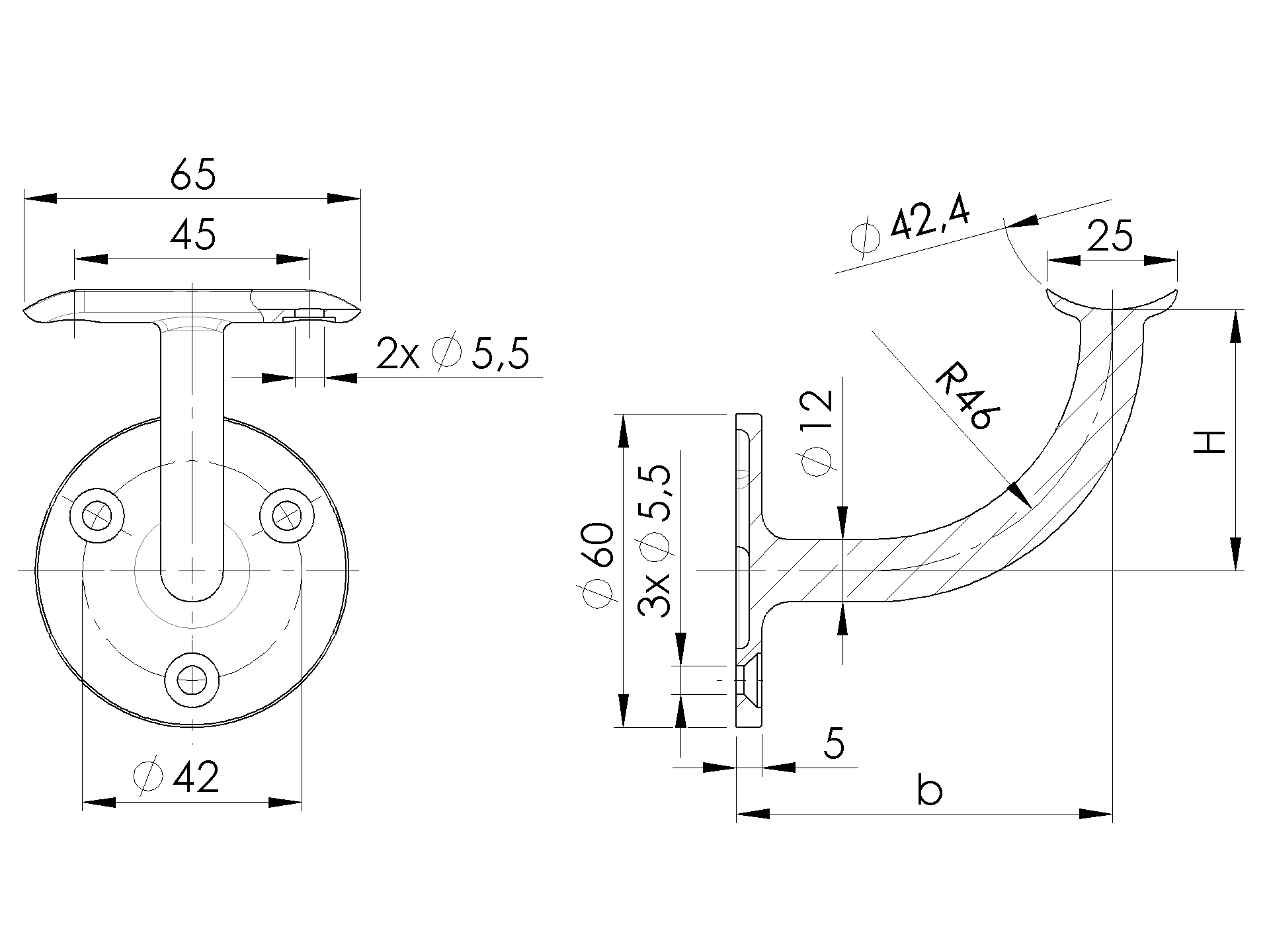 Wall mount handrail bracket A14/0112-042