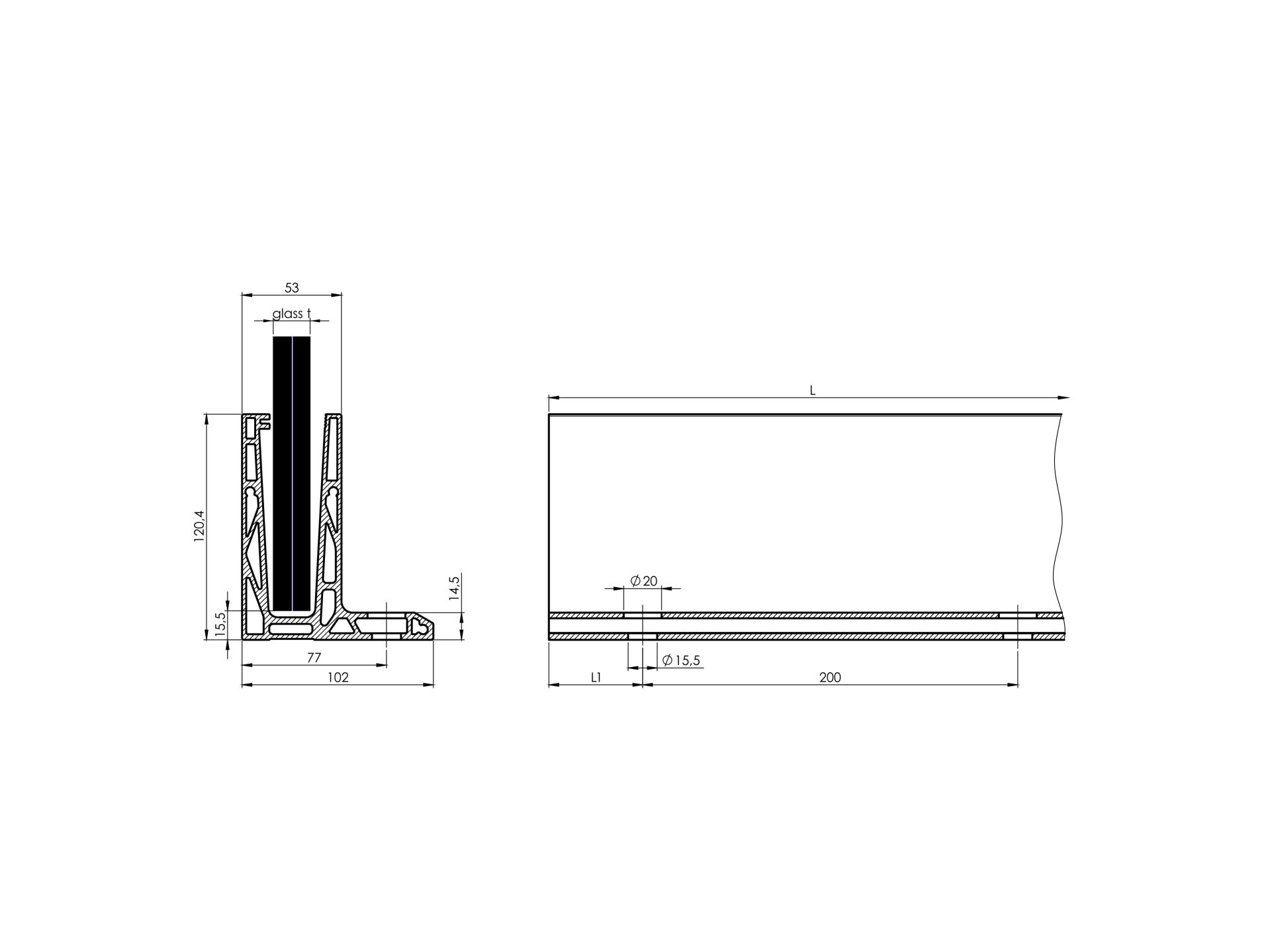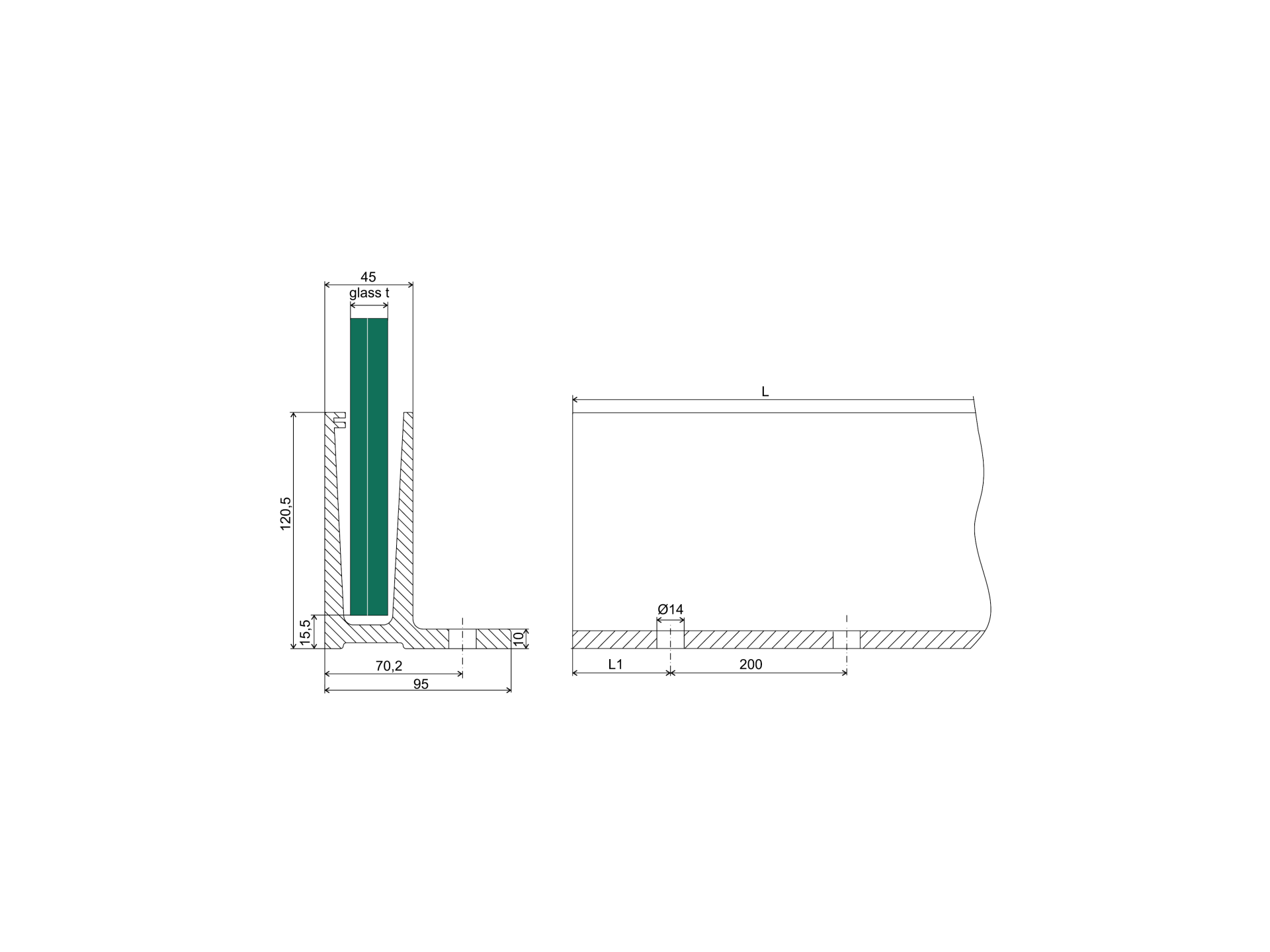 Aluminium profile for glass railing AL/0006-ECO-2500-S-E