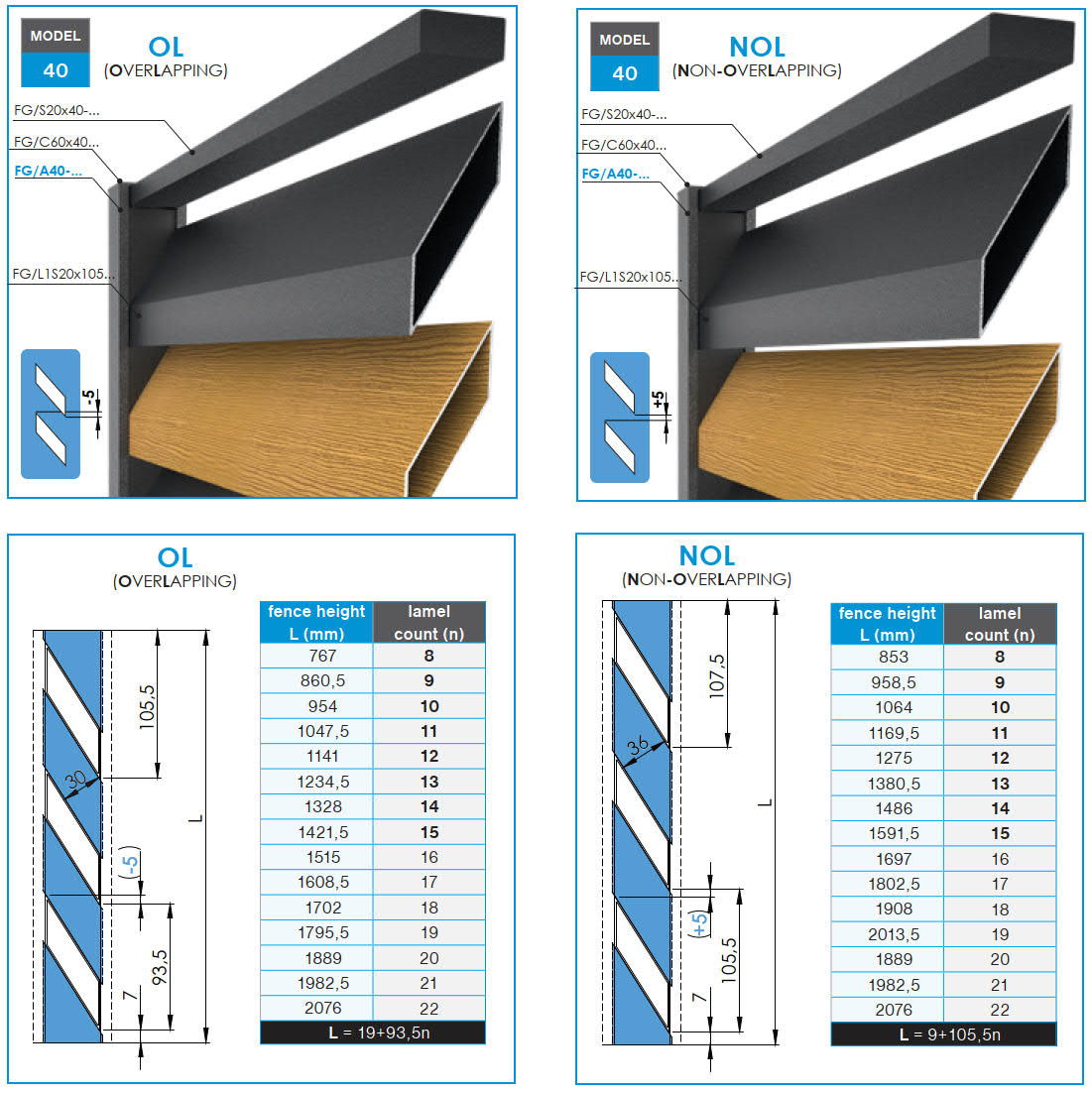 Zawartość opakowania: 2× startowa, 2× końcowa, 10× prawa i 10× lewa listwa osłonowa FG/AF41x9