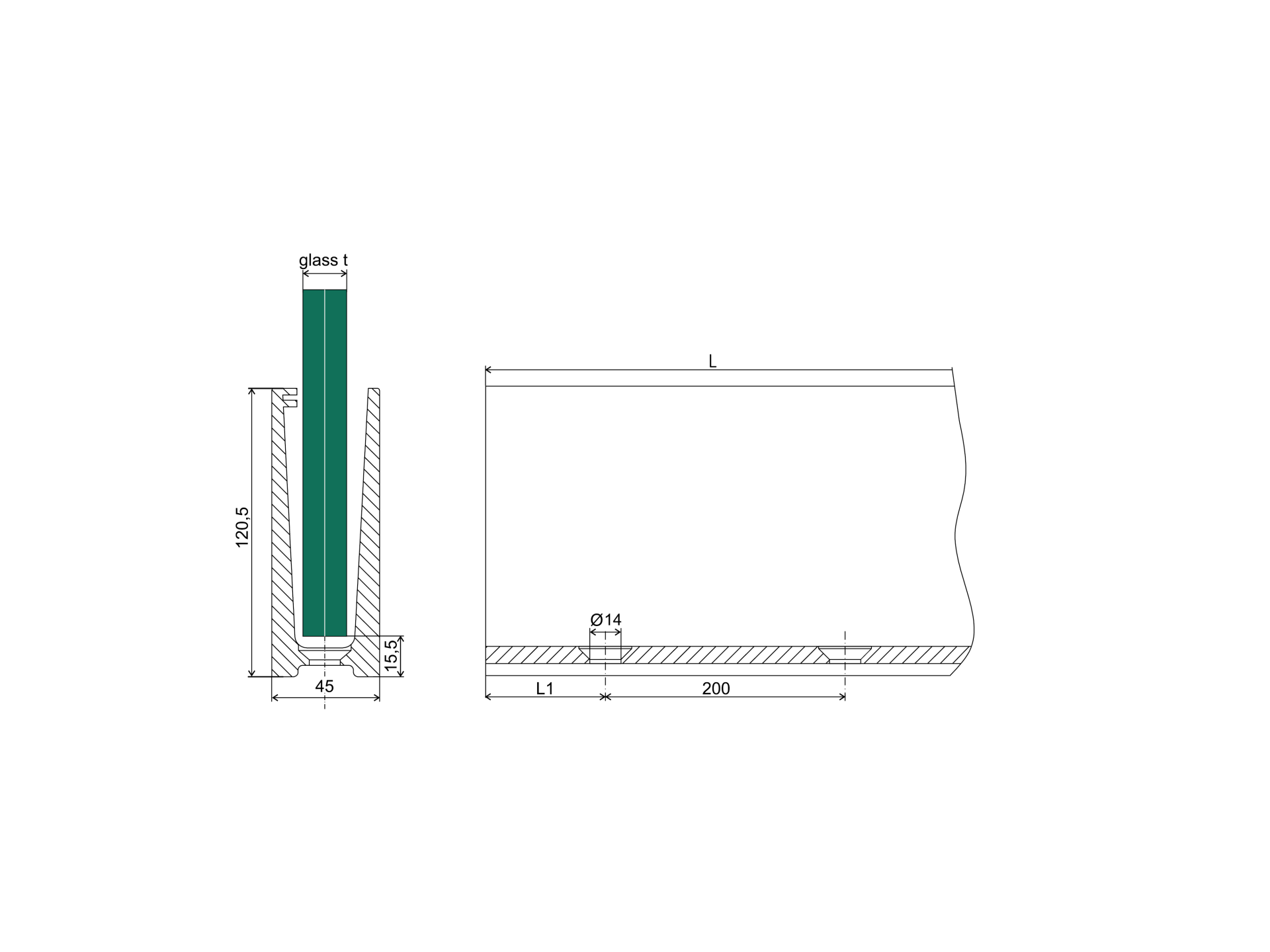 Celosklenené zábradlie-profil-vrchné kotvenie AL/0004-1250-S-E