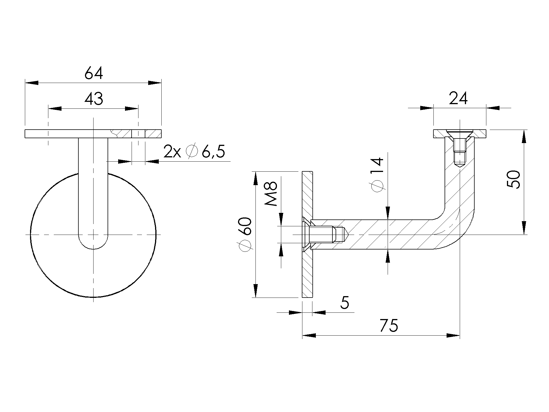 Držiak madla na stenu A/0111-000