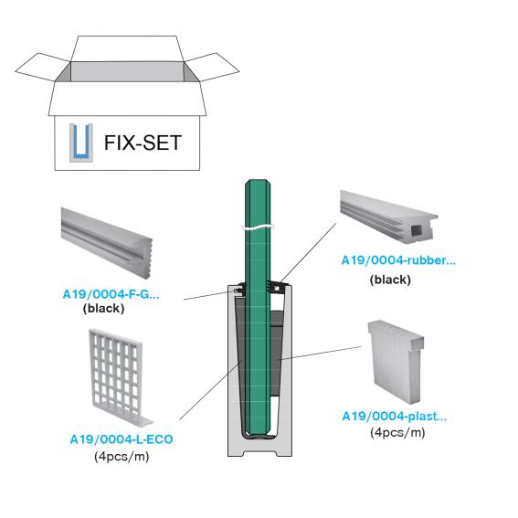 Set pre kotvenie skla 16,76mm, do profilov AL/0004..., AL/0004-ECO..., AL/0005, AL/0006, AL/0006-ECO..., AL/0011..., sivé tesnenia.