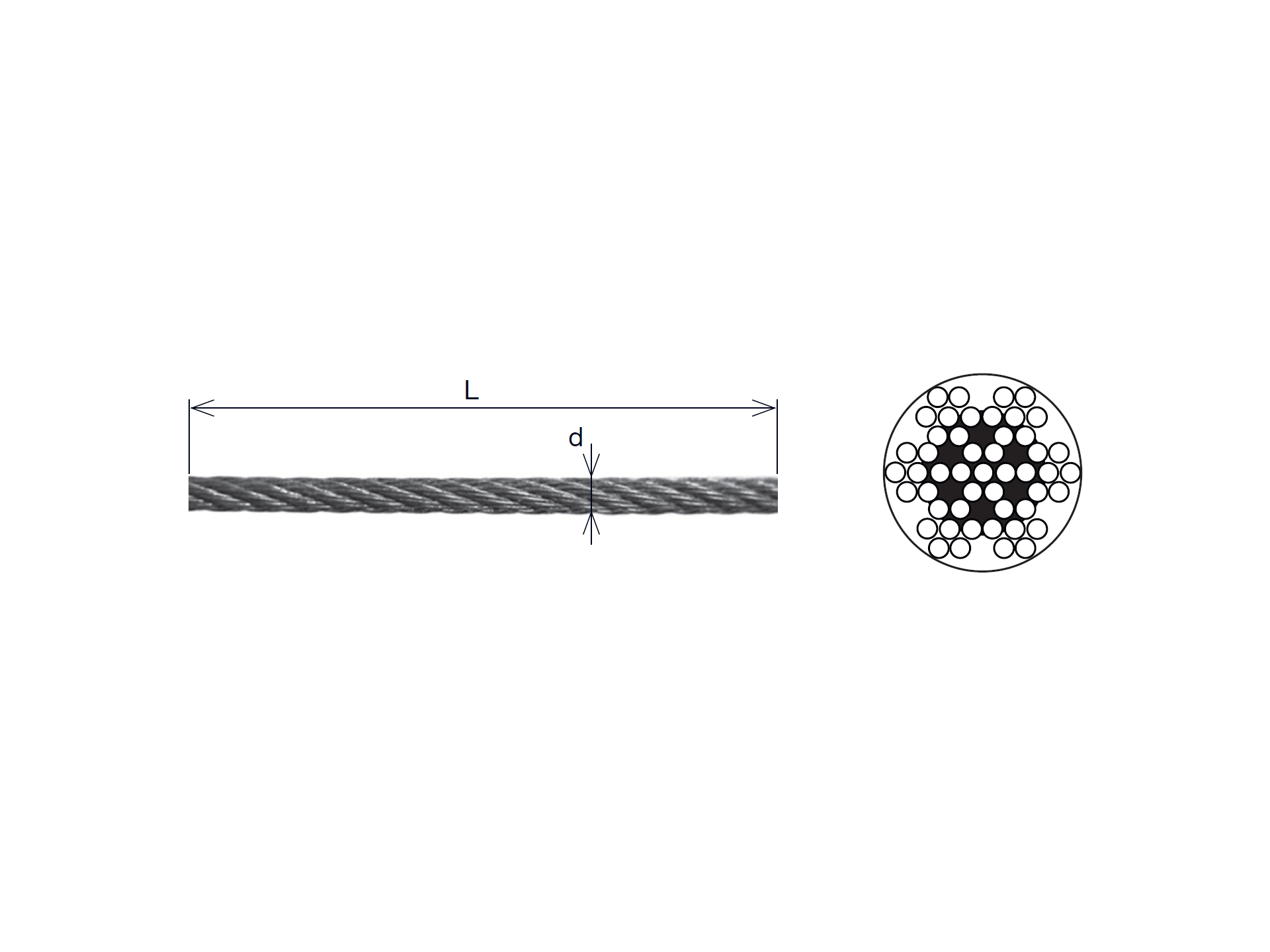 Materiál: Nerez AISI 316, Povrchová úprava: Brus, Priemer lanka: 5 mm